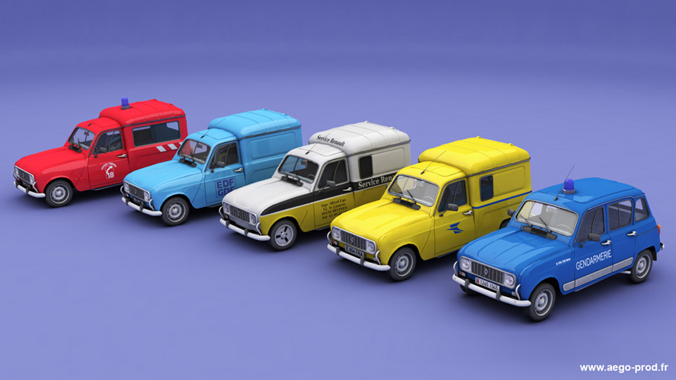 Lot des trois Renault 4 F4 Ref: r04 Modelisation: tris+quads Polys:53 197 Tris: 100 574 Vertices: 57 160 Textures: Partielles : 1 map en 2096/ 2096 pour la carroserie, le tableau de bord et les sièges, 1 map en 1024/ 1024 pour les roues, 1 map d'opacité en 512/ 512 pour les vitres. Formats disponibles: 3DS Max 2012 scanline, 3DS Max 2012 et Vray 2.0, Blender 2.71 Cycles, C4D R13, FBX 2012, OBJ |